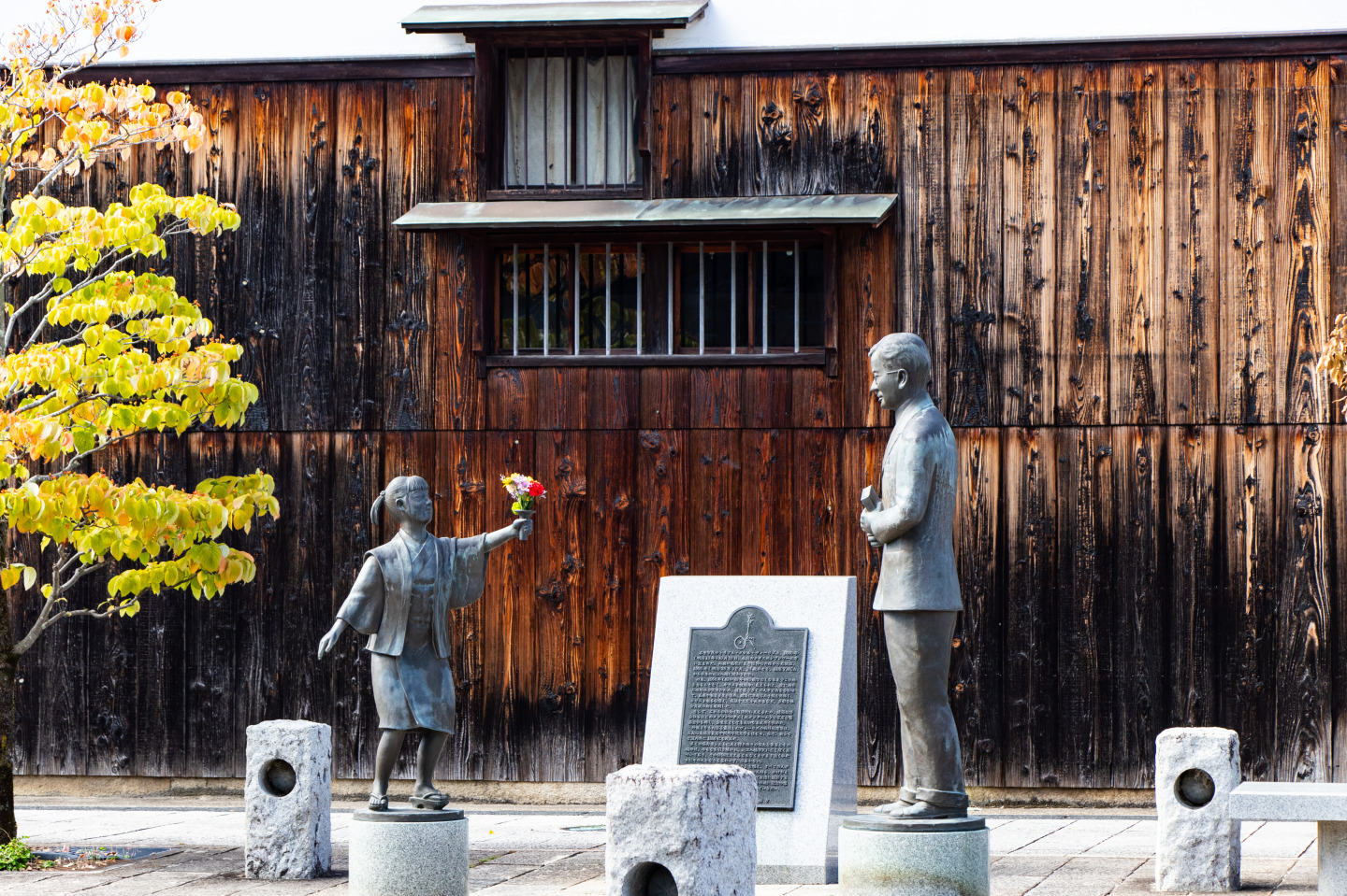 通りを挟んだ向かいには、ヴォーリズと少女の像が佇んでいます。