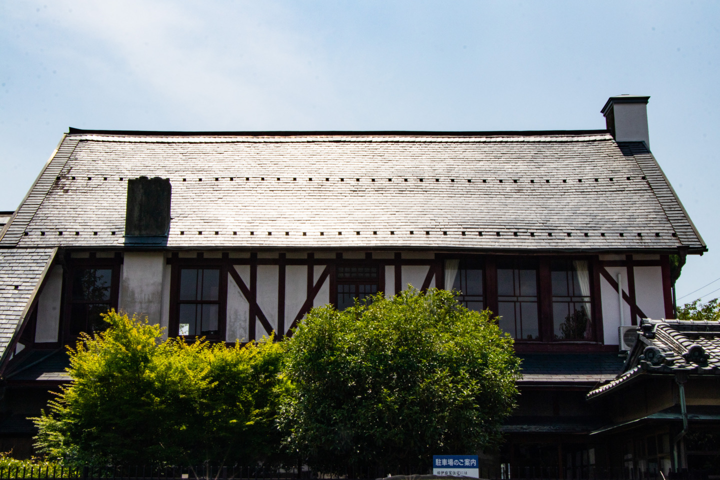 建物の外観はハーフティンバーと呼ばれる様式で、住宅内は左右に分かれた日本建築と西洋建築が一つにくっついた造りとなっています。