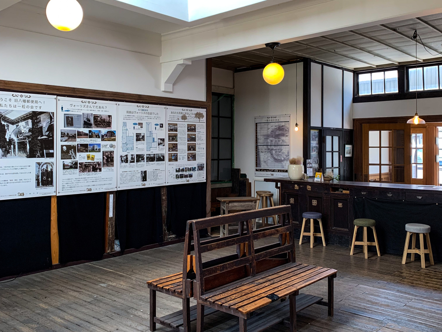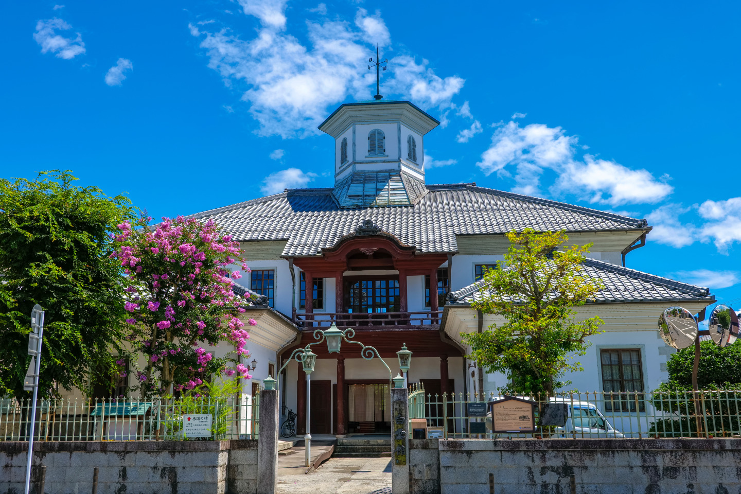 明治10年に八幡東学校として建築された擬洋風建造物で、いまは観光案内所として使われています。