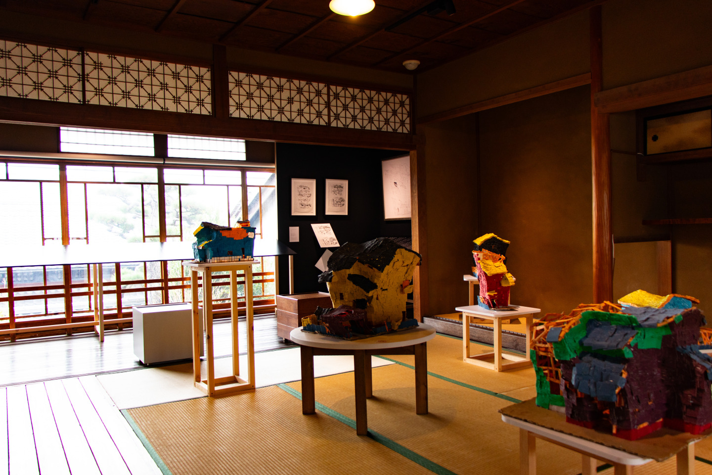 重要伝統的建造物群保存地区に遺された昭和初期の町家をリノベーションした美術館で、和室、蔵、中庭などがとても魅力的な表現の場となっています。