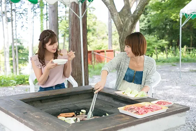 ランチは、休暇村近江八幡の日帰りBBQプランを堪能。豪華近江牛のセットで、「近江牛」のおいしさを実感してください。場所は、緑と琵琶湖をそばに感じられるスペースで屋根付きです。キャンプ場も併設されており、どちらも必要な道具や食材は揃っているので、手ぶらでOK。気軽に予約してみては。