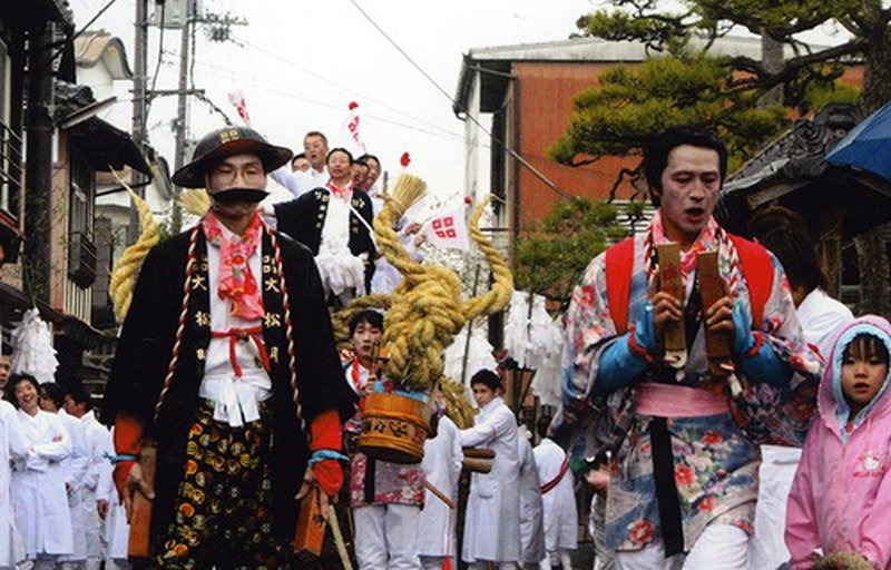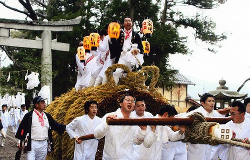 沙沙貴神社(ささきじんじゃ)は、佐々木姓の発祥の地、佐々木源氏の氏神として広く知られている神社です。その氏神様をまつるのが、毎年4月に行われている沙沙貴まつり。まつりでは、長さ約5m・直径約2mもある大きな松明を、複数人の氏子が横に引いて境内に運び込み、奉火する伝統行事です。祭りは1日を通して行われ、大松明は数時間もかけて街の中を移動します。大人5~6人は上に乗れるほどに大きな松明が移動する姿はまさに圧巻で、他では見られない光景。