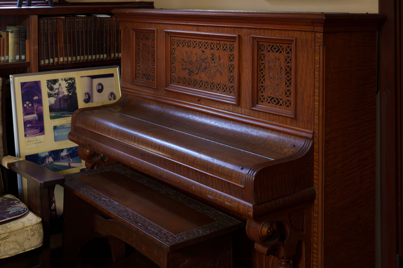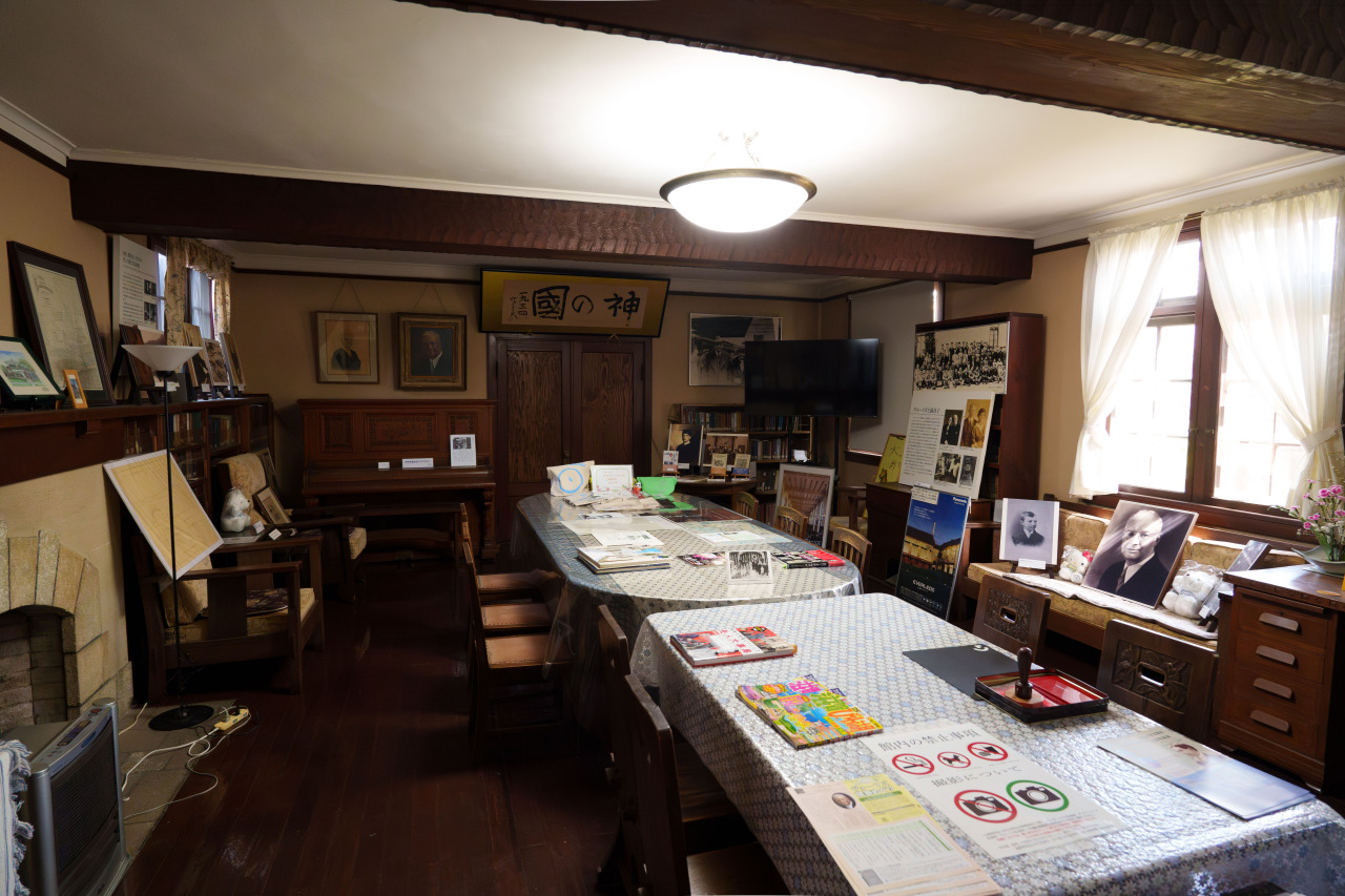 近江八幡を拠点に活躍したアメリカ人建築家、ウィリアム・メレル・ヴォーリズが、晩年を妻と共に過ごすために建てた邸宅。1931年に建てられた2階建の洋館で、下見板張りの木造外壁に白い煙突が印象的です。広い居間や応接室に加え、夫人のために畳の和室も設けられた和洋折衷の邸宅内は、ヴォーリズ夫妻の暮らしぶりを今に伝える貴重な空間。ヴォーリズが愛用したピアノや、貴重な資料の数々も展示されています。