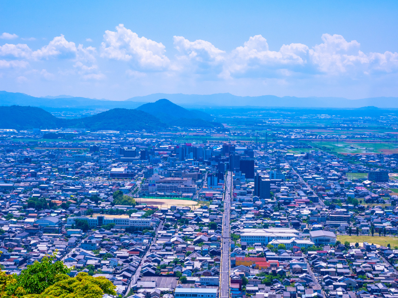 鶴が翼を広げたような姿から、鶴翼山(かくよくざん)とも呼ばれる八幡山。