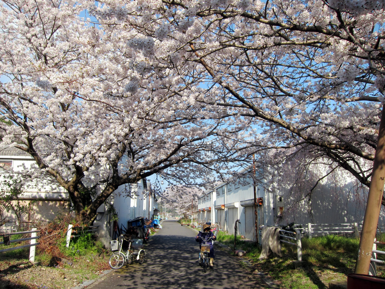 春になると防波堤沿いの湖岸の桜並木が島を美しく彩ります。島の西側には遊歩道が整備されているので、満開の桜並木の下を散策するのもおすすめ。車は走っていないので、安心してゆったりとした気分で散策できます。