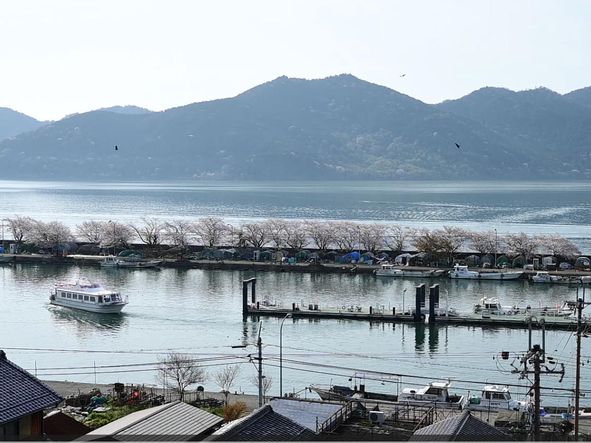 琵琶湖の沖合約1.5 ㎞に浮かぶ沖島。約200人余りの人々がこの島に暮らし、船で往来する日常があります。島内に自動車は無く、ガンガンと呼ばれる三輪自転車の姿をあちらこちらで見かけるのも沖島らしい風景の一つ。淡水の湖沼の島に人が住む例は世界的にも少なく、まさに異世界の言葉がふさわしいノスタルジックな場所です。周囲約6.8 ㎞、面積約1.53k㎡。水に囲まれ、その先には長命寺山や鈴鹿山系、比良山系の美しい眺望。昔ながらの暮らしの知恵や豊かな自然が今も変わらず生きづいているのが沖島です。堀切港と島港の往来は沖島通船で約15分。1~2時間に1度のペースで出港しています。