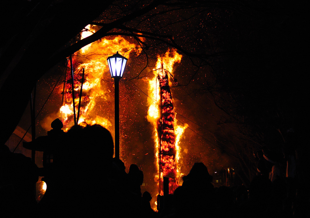 近江八幡には古くから、毎年決まった時期に「火まつり」が市内各地で催され、これを「近江八幡の火祭まつり」と称して国の選択無形民俗文化財に採択されています。中でも左義長まつり、八幡まつり、篠田の花火は三大火祭りとして大いに盛り上がりを見せます。
