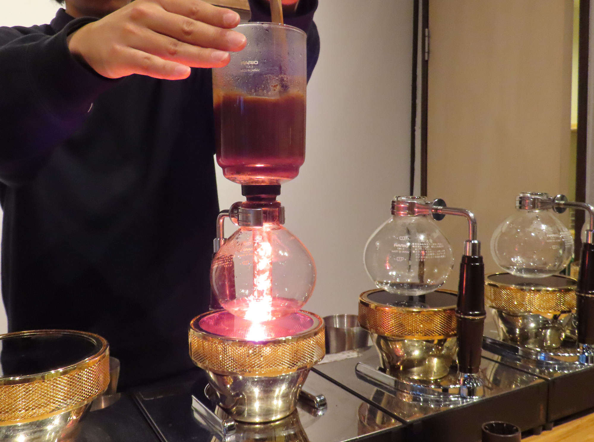 サイフォンなので、コーヒーの温度が高く、温度の変化とともにコーヒーの味わいの変化も楽しめるのがいいです。