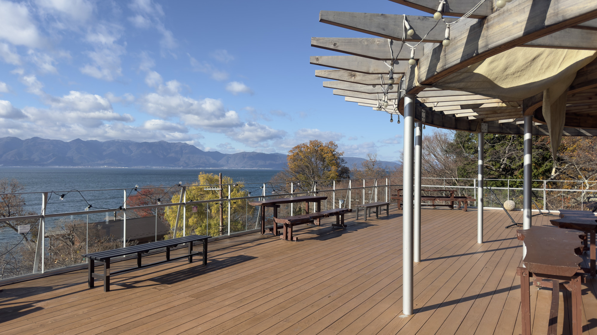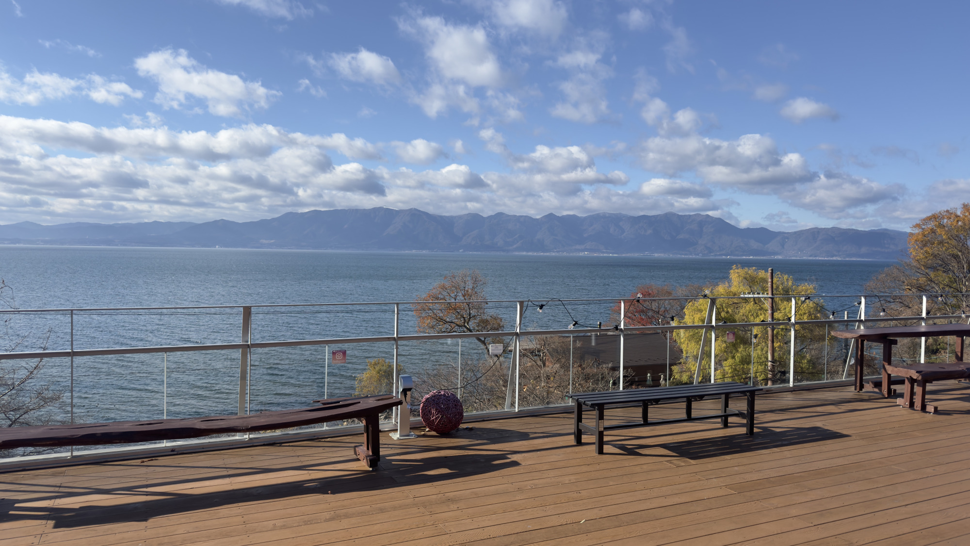 目の前には、遮るもののない琵琶湖の景色が広がっています。