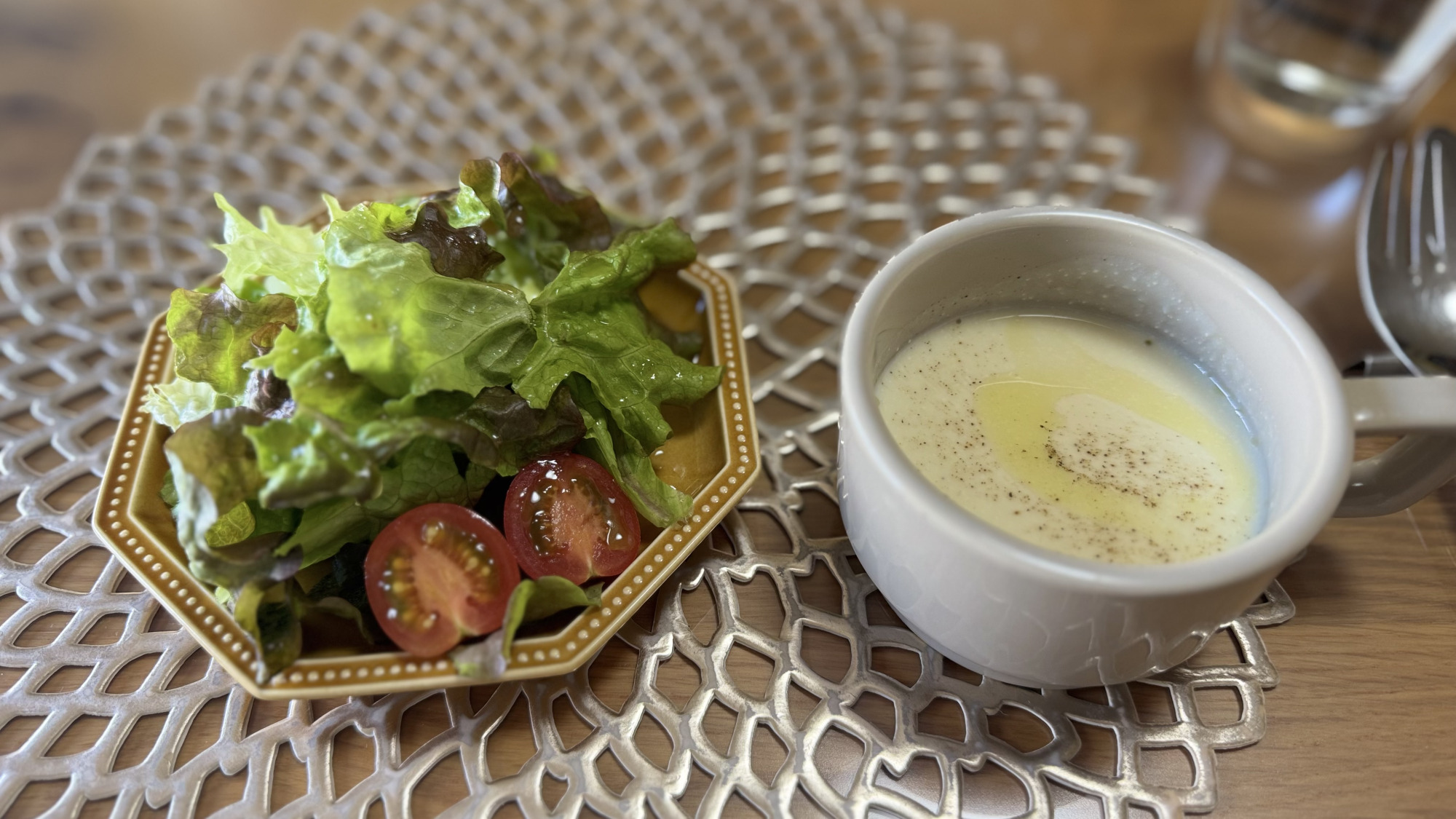 なお、今回いただいた「ふわふわオムライス」と「近江牛とグラバーポークのハンバーグと自家製ベーコンのロースト」は、どちらもスープ・サラダ・ドリンク付き。