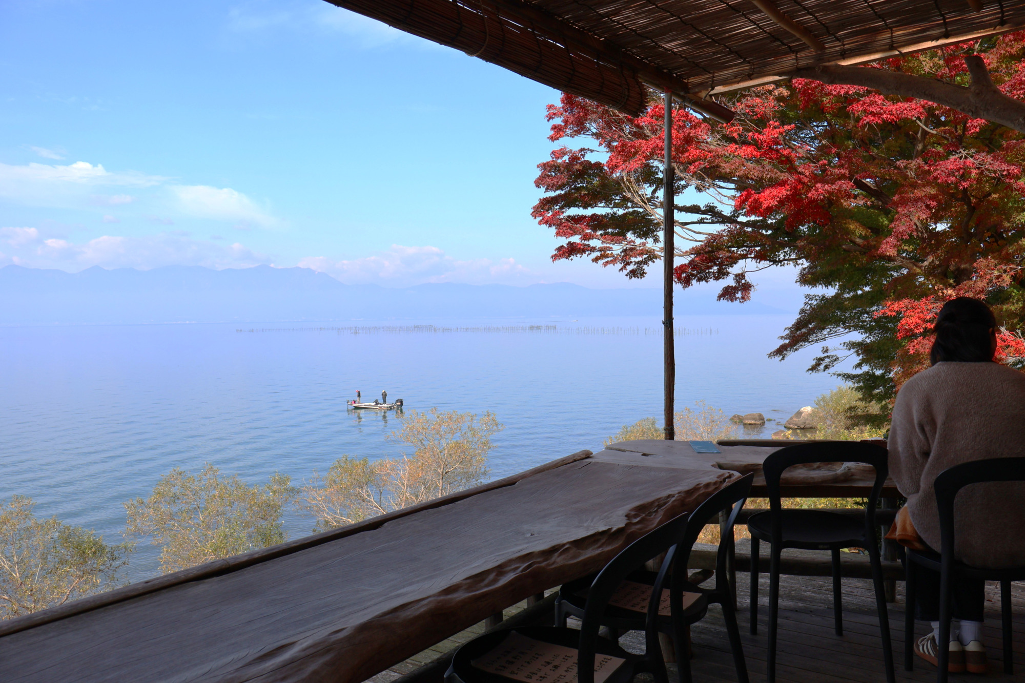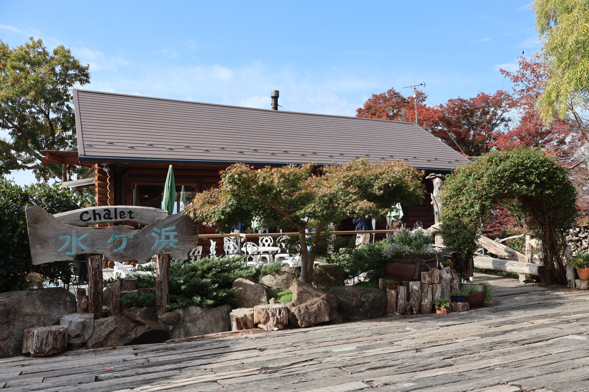 琵琶湖のほとりに佇む、絶景カフェとして知られる人気のカフェ「シャーレ水ヶ浜」