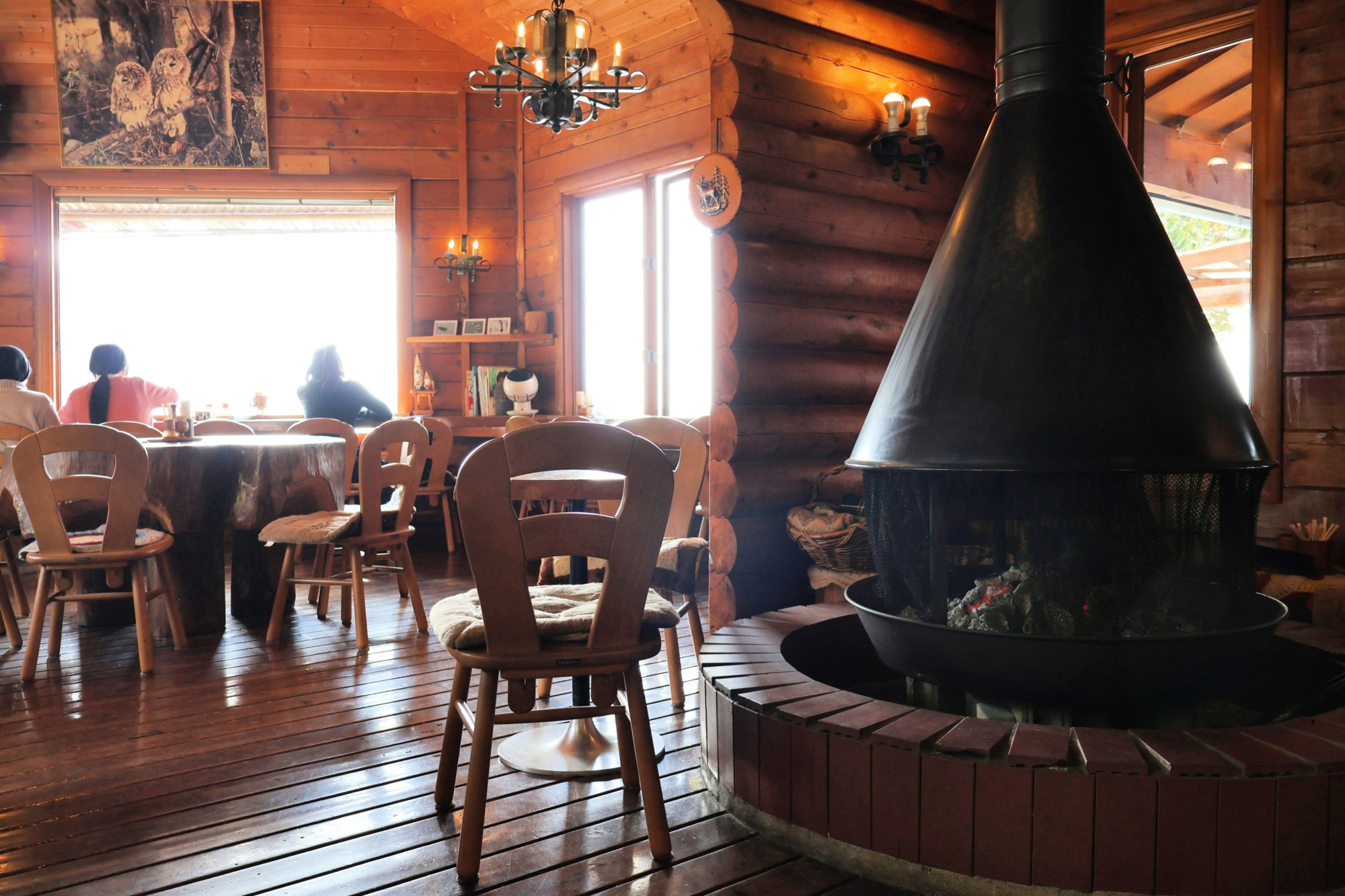 店内は、暖炉のあるあたたかな空間です。今回は人気のテラス席で食事をしました。