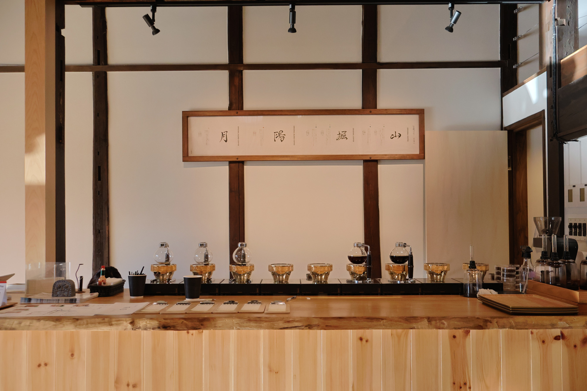 八幡堀のほど近く、歴史ある町並みに溶け込むように佇むサイフォンコーヒー専門店。