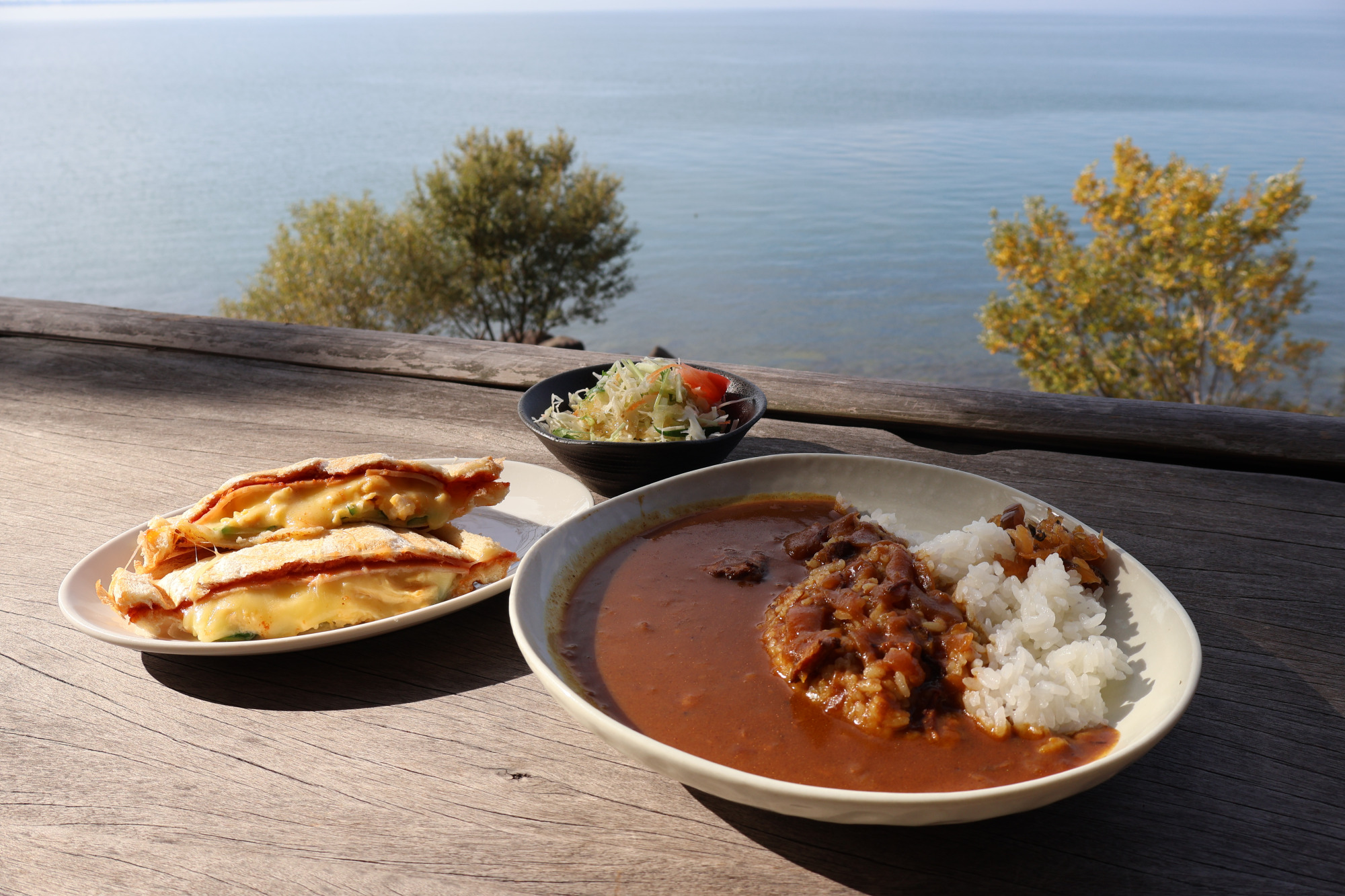 具だくさんでチーズがとろけるホットサンドは食べ応えがあり、一晩じっくり煮込まれたカレーはスパイスのコクと深みが印象的でした。