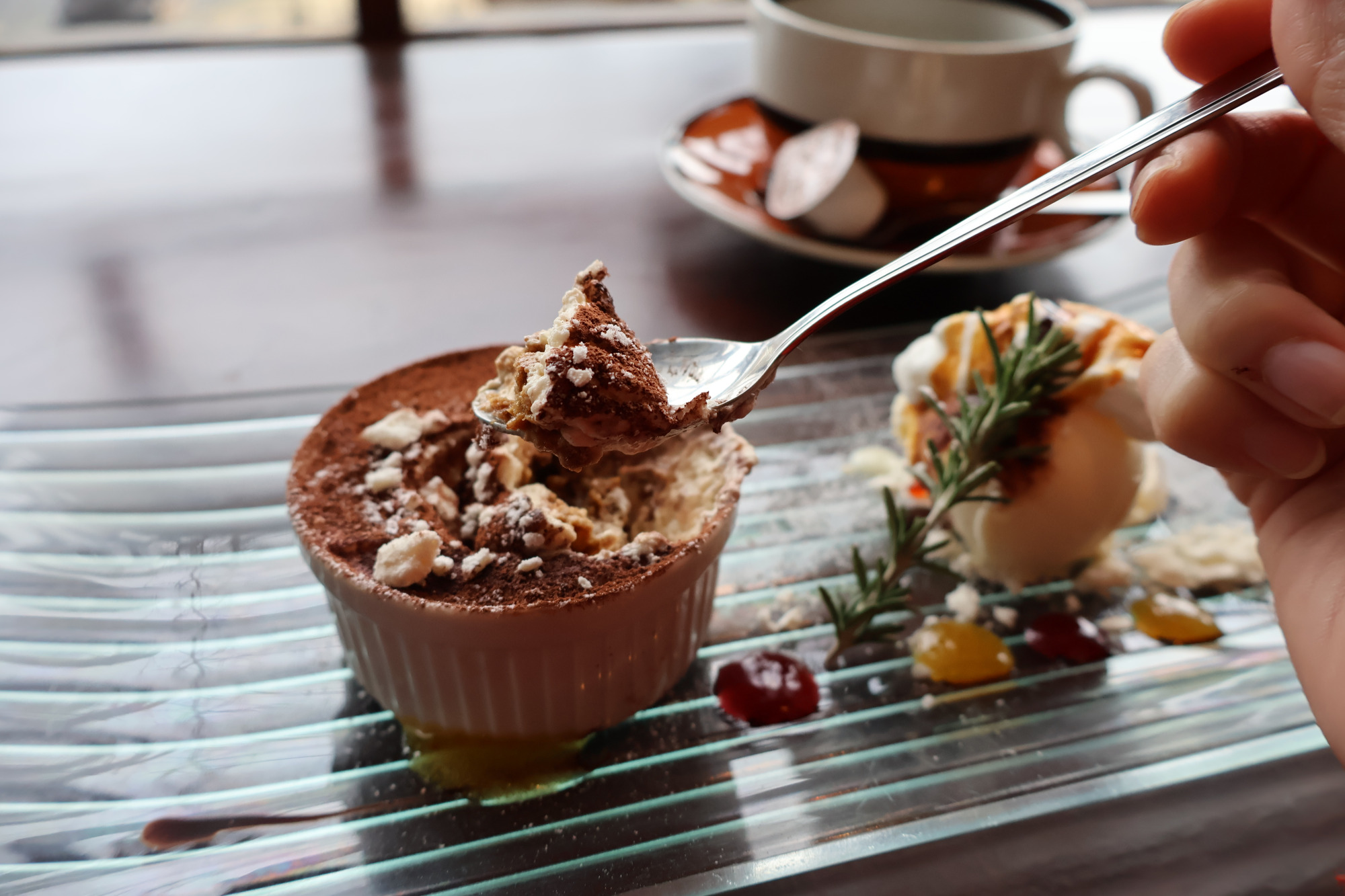 今回は「HAKOお得意“ティラミス”」とホットコーヒーをいただきました。