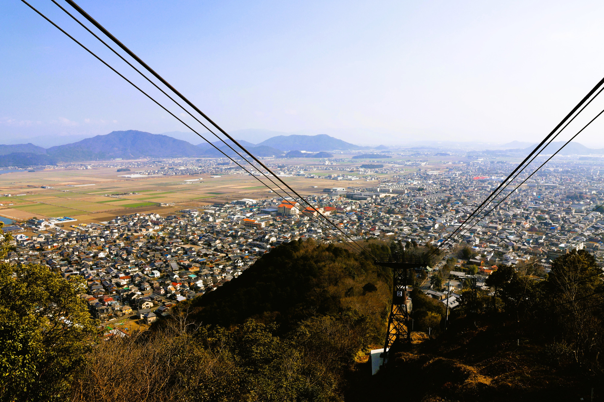 境内からは近江八幡の市街を一望できます。ベンチに座ってのんびり過ごすのもいいですね。