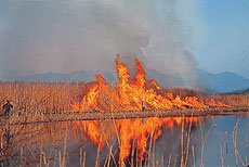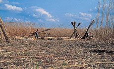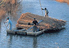 The wetlands of Omihachiman are a protected area of 354 hectares between Lake Biwa and the town of Omihachiman, comprising an intricate landscape of waterways, reedbeds, rice paddies, and villages. The wetlands were formed over centuries as humans created waterways for transport and fishing and cultivated reedbeds. The reeds in the wetlands are famous for their durability and have traditionally been used as roofing and building materials as well as to make screens and blinds. The reeds also perform important natural functions, such as protecting the lakeshore from erosion, cleansing the water of pollutants, and providing a habitat and breeding ground for a variety of waterfowl and fish.